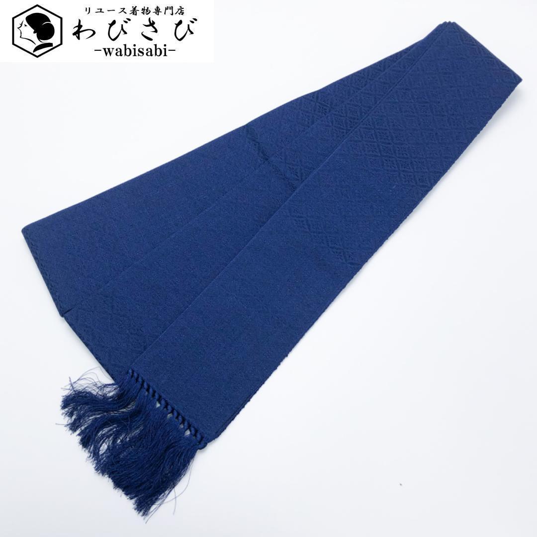 紺桔梗色の青味のお色味に菱繋ぎ、花菱模様がデザインされた雰囲気の良い素敵な柄裄のお品でございます。