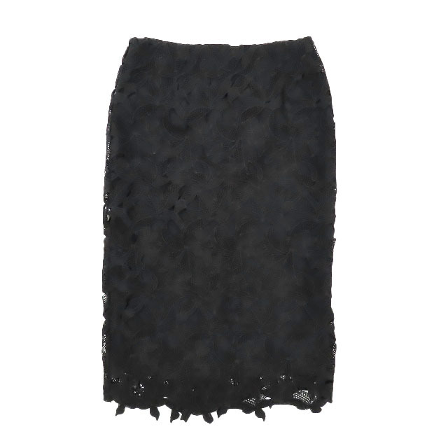 > 美品 アウラアイラ AULA AILA レーススカート 膝丈 花柄 タイトスカート カジュアル ボトムス 黒 ブラック 0 レディース
