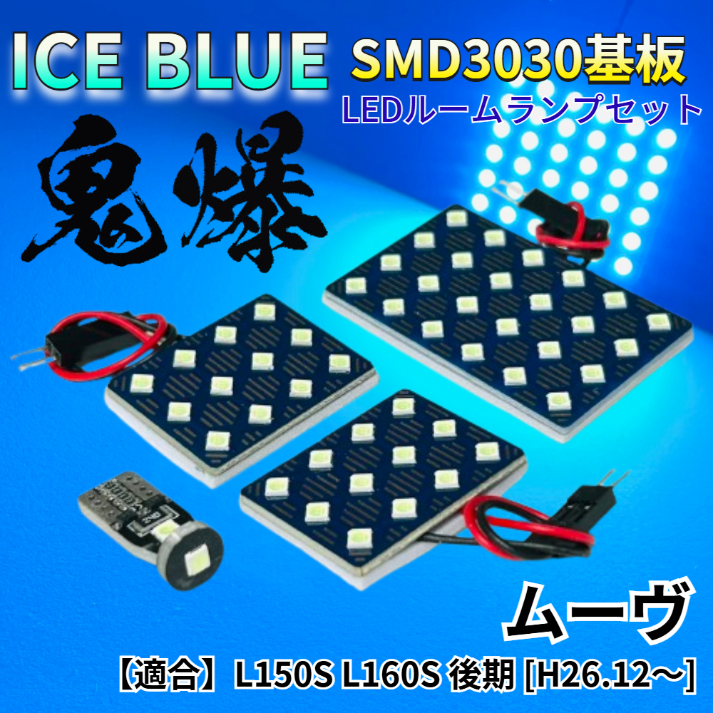 > 【アイスブルー】ムーヴ (ムーブ) 後期 LA150S LA160S 鬼爆基板 3030SMD LED ルームランプ セット 車内灯 室内灯 パーツ アクセサリ