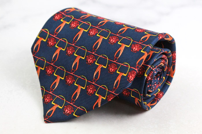 - ジャンニ・ヴェルサーチ ブランド ネクタイ シルク メドゥーサ柄 ドット柄 ワイドタイ PO メンズ ネイビー Gianni Versace