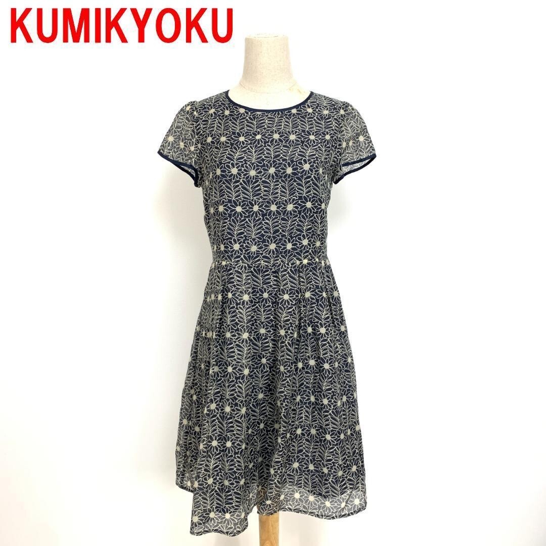 > A5527 組曲 ロングワンピース フレンチスリーブ KUMIKYOKU クミキョク 裏地あり ブラック ベージュ 総柄フレア 花柄 黒 2