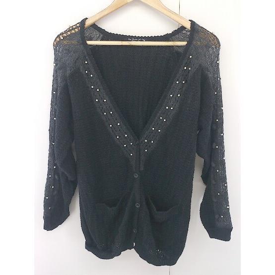 - ◇ RNA アールエヌエー 装飾 長袖 ニット カーディガン サイズM ブラック グレー レディース