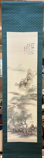 - 真作保証 山田介堂【淡彩山水】共箱・二重箱 絹特上飛金襴 福井