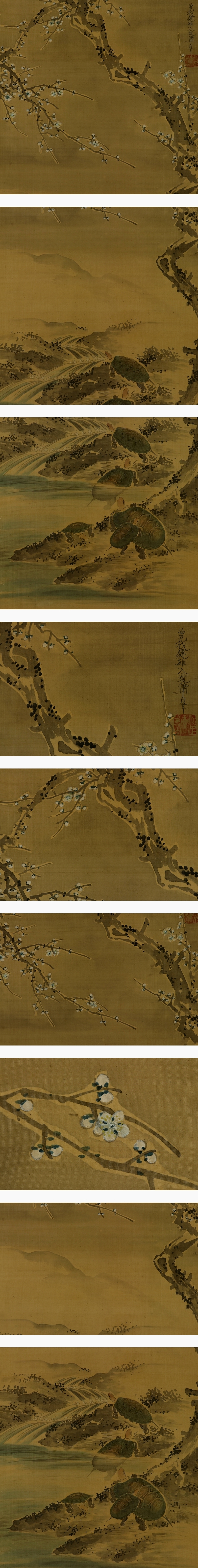 - 【模写】曽我蕭白【三対幅・慶祝図】◆絹本◆合箱◆掛軸 s12007