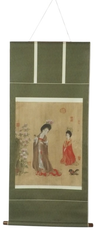 - 中国古玩 中国古美術 蠶花仕女図 周芳 紙本掛軸 TMA704