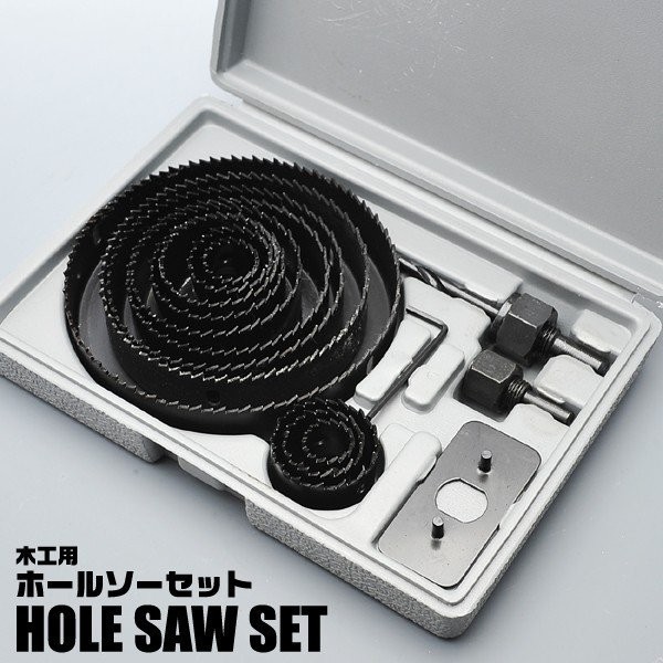 - 木工用 ホールソー 16点 セット 収納ケース付 プロ仕様 全 12サイズ 19mm - 127mm対応 穴あけ 工具 ホルソー 16PCS 木工作業 DIY 簡単