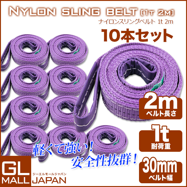 - 強度・耐荷・耐久性に!10本セット ナイロンスリングベルト ベルトスリング スリングベルト 荷上げ 耐荷 1t 1000kg 2m