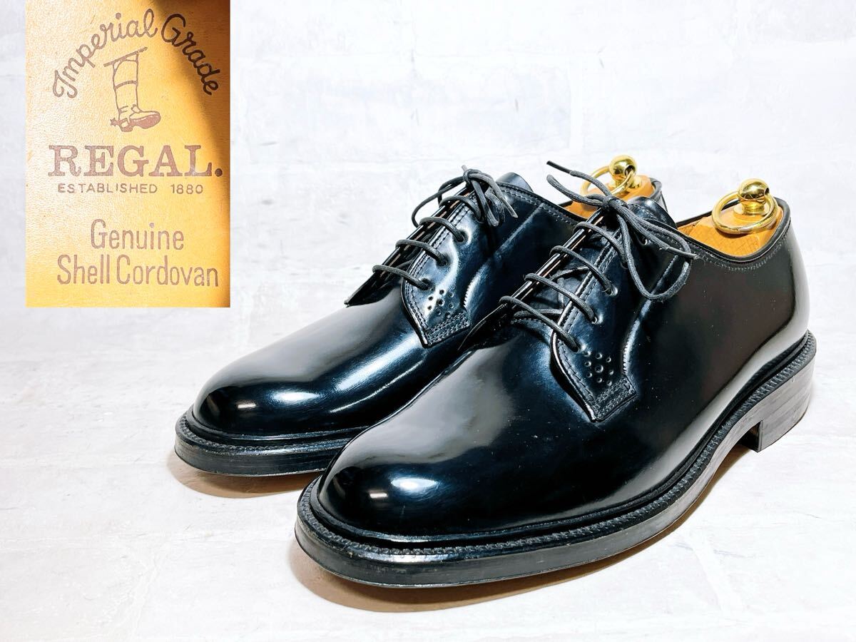 - 貴重!!【未使用】REGAL リーガル シェルコードバン 最高級 プレーントゥ 黒 25EEcm レザーソール 紳士靴 メンズ