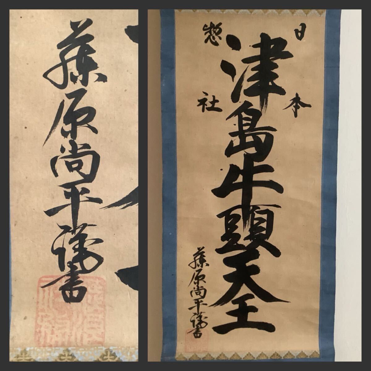 > 【模写】掛軸A733[藤原尚平 津島牛頭天王]紙本 書いたもの/神仏画 神道 神教 御神號 日本総社 津島神社 守護神 古書 御祭神