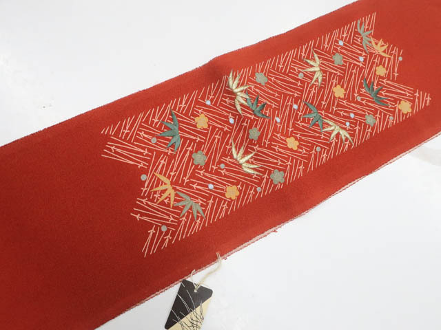 - 《京都一輝堂》【着物】和装小物 半衿 刺繍 笹文 未仕様品 r7w04-1629