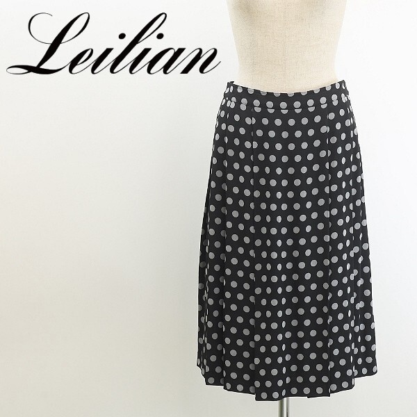 > ◆Leilian レリアン ドット 水玉柄 プリーツ スカート 黒 ブラック×ライトグレー 11