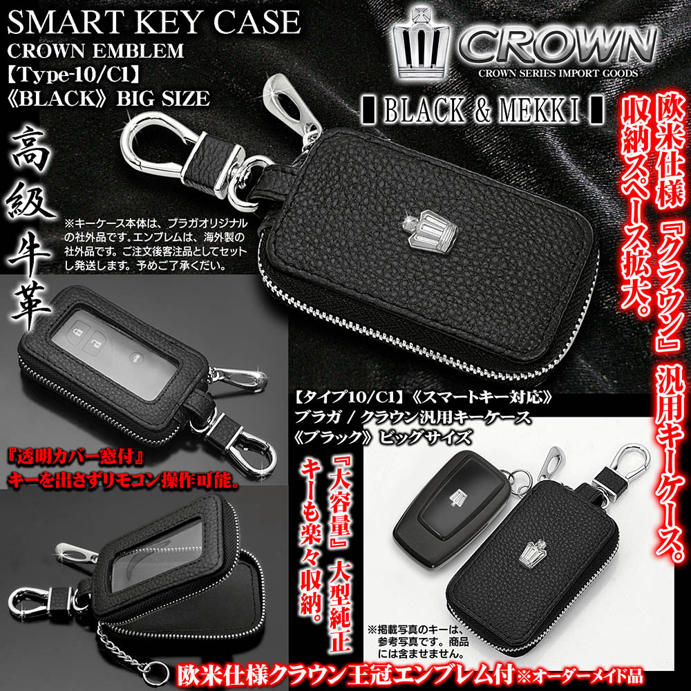 - 210/200マジェスタ/クラウン キーケース/Lサイズ/ブラック/クラウン王冠エンブレム付/タイプ10/C1/窓/回転フック/スマートキー/牛革/ブラガ