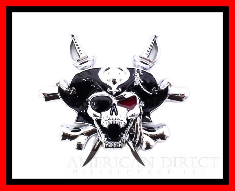 > 【稀少/パイレーツ/エンブレム】汎用 3D クローム ワンピース ガイコツ ドクロ ハーレー ホットロッド バッジ カスタム カー バイク スカル