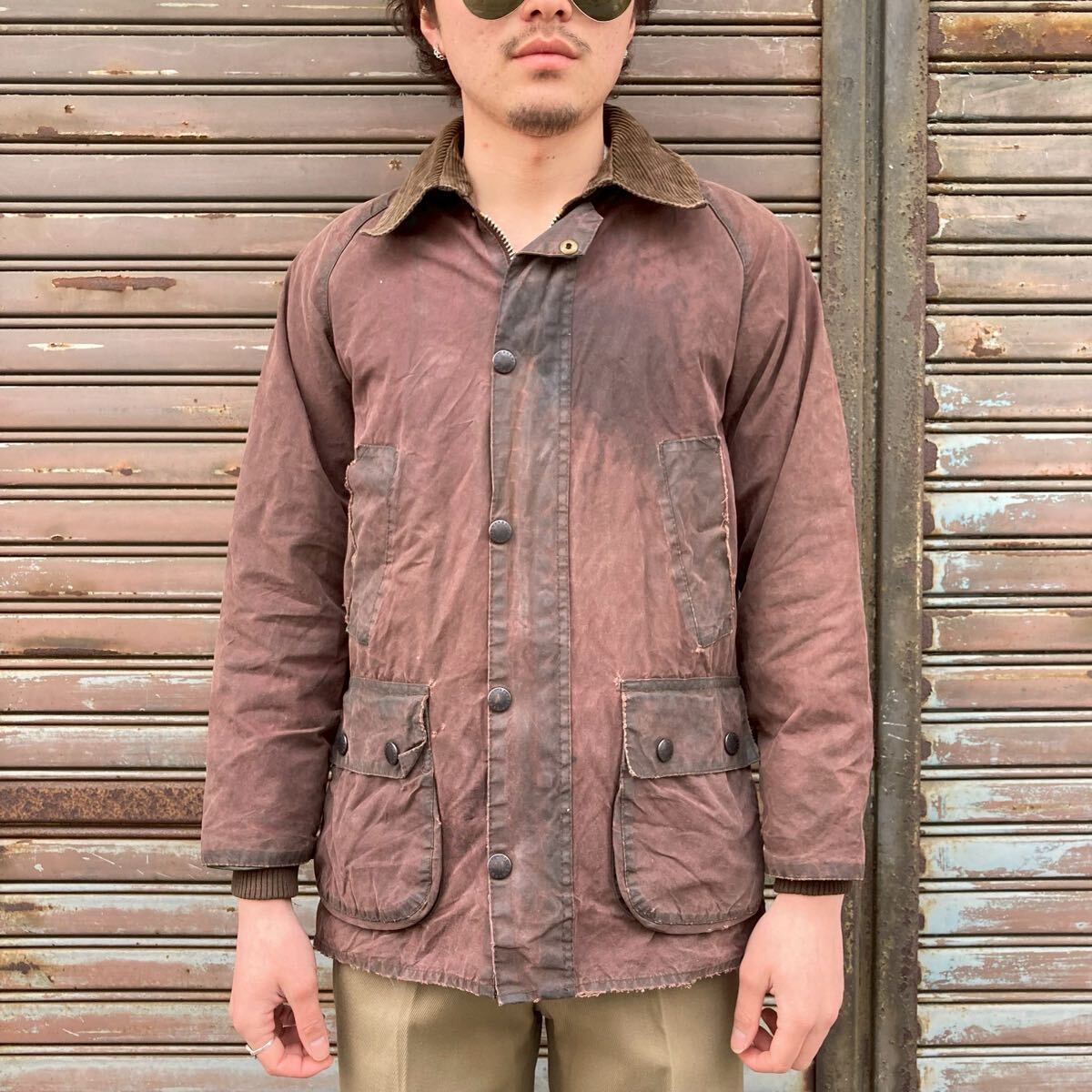 > 貴重 XS 英国製 90s バブアー BARBOUR ビデイル BEDALE オイルジャケット size C34 86cm ヴィンテージ 3ワラント ワインレッド 赤茶色