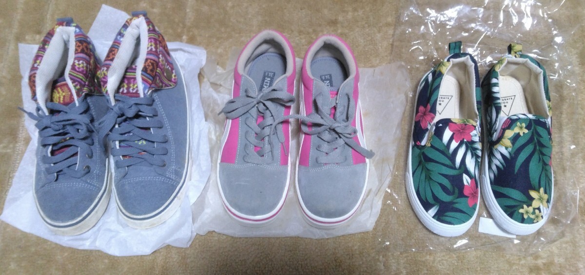 - 女性用 スニーカー シューズ 靴 24㎝ 2~3回使用した中古2足 Mサイズ(花柄模様) 新品未使用1足 3足セット