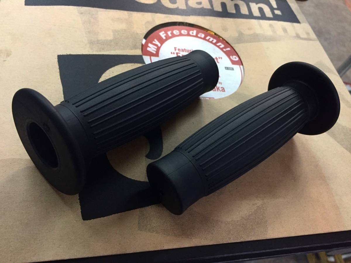- 非貫通 ミリサイズ樽型グリップ 黒 ブラック チョッパー ボバー グラストラッカー クラブマン SR400 SR500 XS650 TW200 カブ シャリー