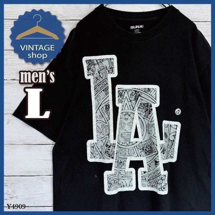 - 【SUNA COTTON】LA古着USAアメリカTシャツ半袖メンズLブラック