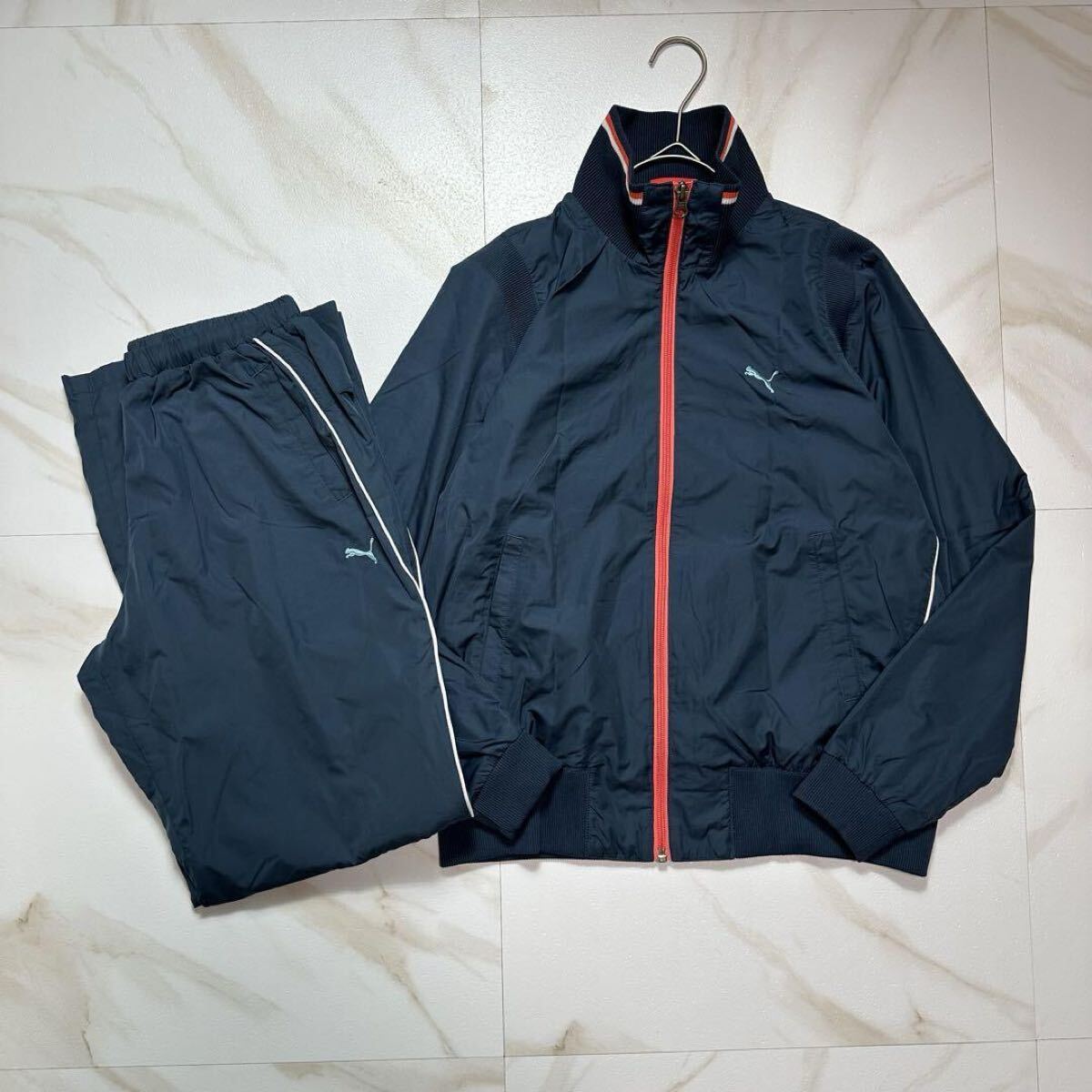 > PUMAナイロンジャケット上下セットアップ ネイビー 紺 刺繍 スポーツ Mサイズ プーマ トラックジャケット