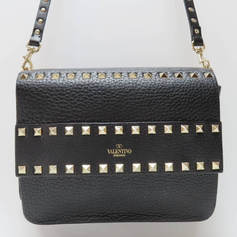 - S04-k100 VALENTINO GARAVANI ヴァレンティノガラヴァーニ ロックスタッズ フラップ レザー ショルダーバッグ ブラック