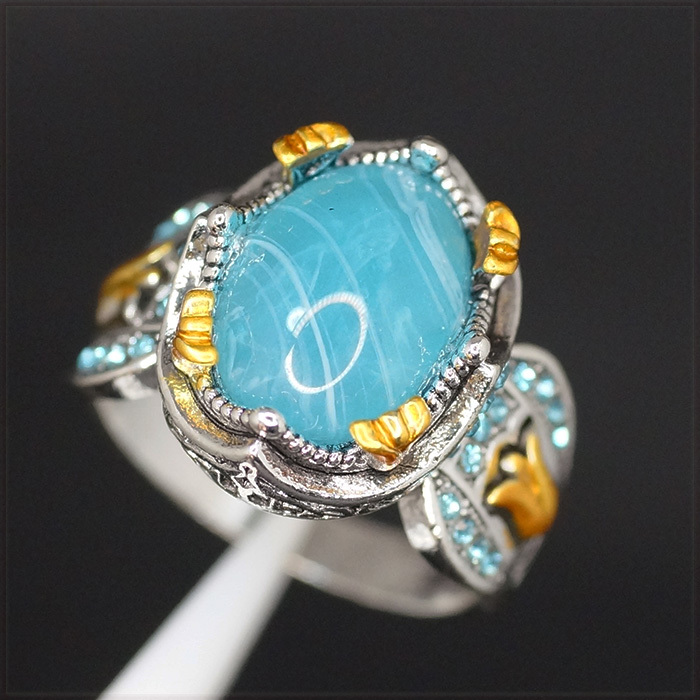 > [RING] 美しい オーバル アクアマリン カラー ストーン ブルー CZ プラチナ イエローゴールド カラー ラグジュアリー デザイン リング 17号