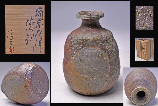 > 川上清美 ★ 備前唐津 徳利 ★ 共箱 ★ 徳利 ★ 備前焼 ★ 唐津焼 ★ 田中佐次郎 薫陶 ★ 渋みある逸品 ★ 酒器 ★ 窯変 ★ 牡丹餅