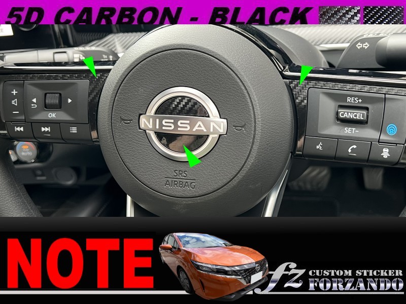 > ノート E13 ステアリングパネルカバー1 5Dカーボン調ブラック 車種別カット済みステッカー専門店fz FE13 オーラ
