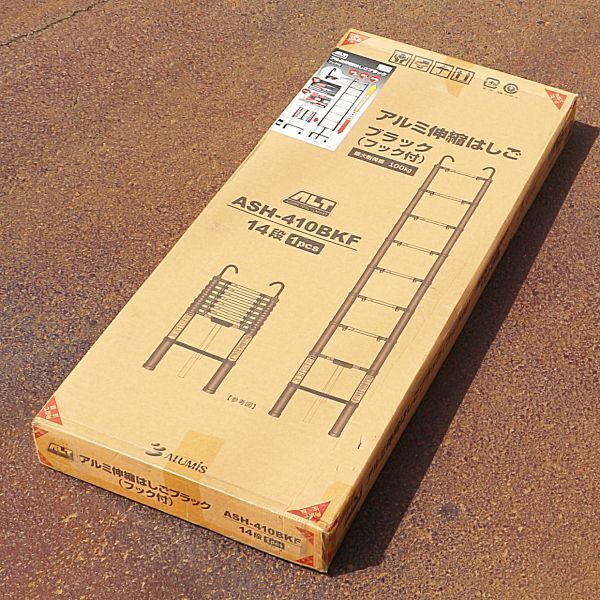 - 【新潟発】未使用 アルミス アルミ伸縮はしご 14段 ASH-410BKF 全長4.1m 重量10.8kg ブラック フック付 高所作業 脚立 はしご 園芸 工具