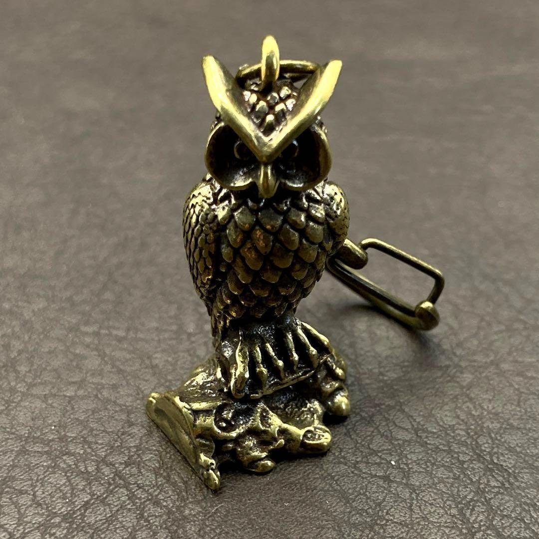 - 真鍮 キーホルダー キーリング ヴィンテージ ビンテージ 金色 鳥 アンティーク レトロ 真鍮製 ペンダントトップ 置物 チャーム フクロウ 85