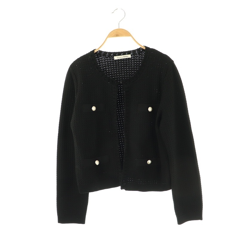 > エムプルミエ ブラック M-Premier BLACK フロントホックデザインニットジャケットノーカラー 38 ブラック /DF ■OS レディース