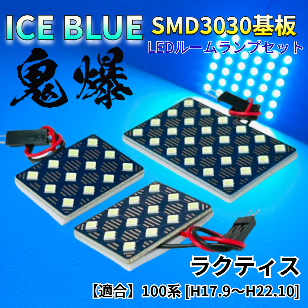 - 【アイスブルー】ラクティス 100系 [H17.9~H22.10] 鬼爆基板 3030SMD LED ルームランプ セット 車内灯 室内灯 パーツ アクセサリ