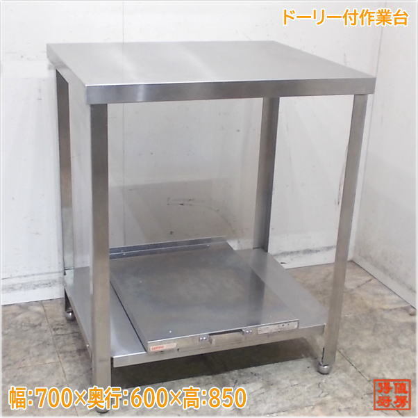 - ステンレス ドーリー付作業台 700×600×850 業務用 中古厨房/25D1430Z