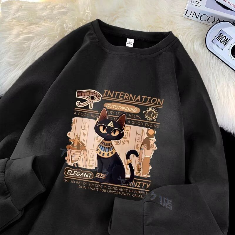> メンズ トレーナー トップス ペアルック 大きいサイズ 韓国風 長袖 丸首 プリント 猫柄 ゆったり 春秋(4色M-4XL)お色選択可