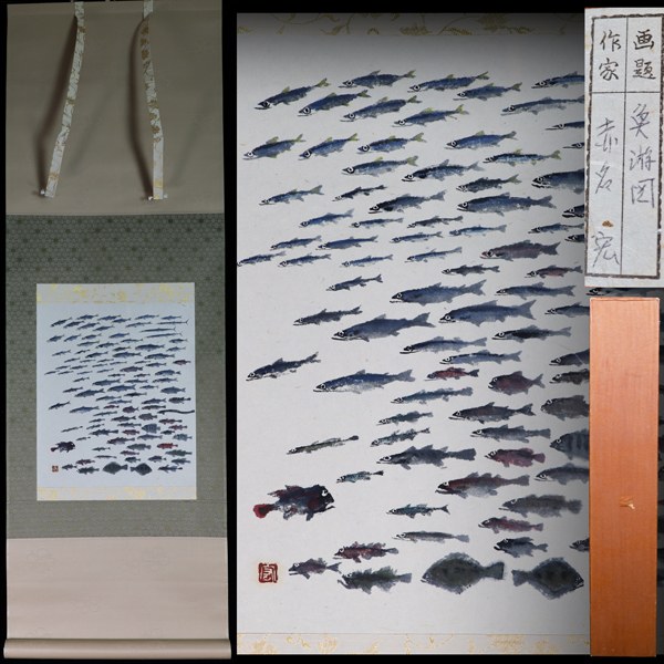 - ◇雅◇ 真作保証 赤穴宏 『 魚遊図 』 新制作協会会員 掛軸 紙本 道立近代美術館作品収蔵 武蔵野美大教授 北海道根室市出身/HK.24.7 [L12]U