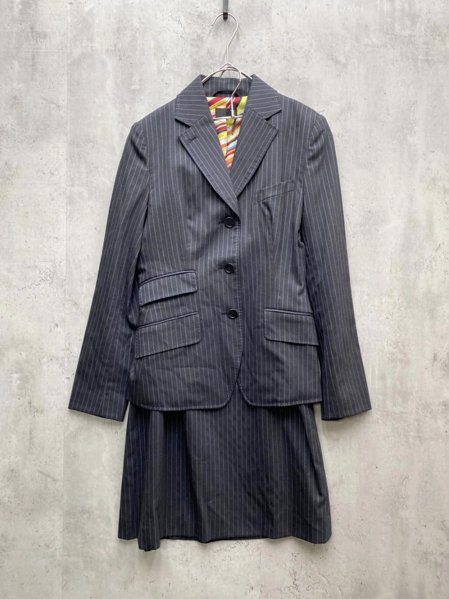 - Paul Smith Black Label ポールスミスブラックレーベル ストライプ ジャケット スカート セットアップ size38/40/濃紺 ■◇
