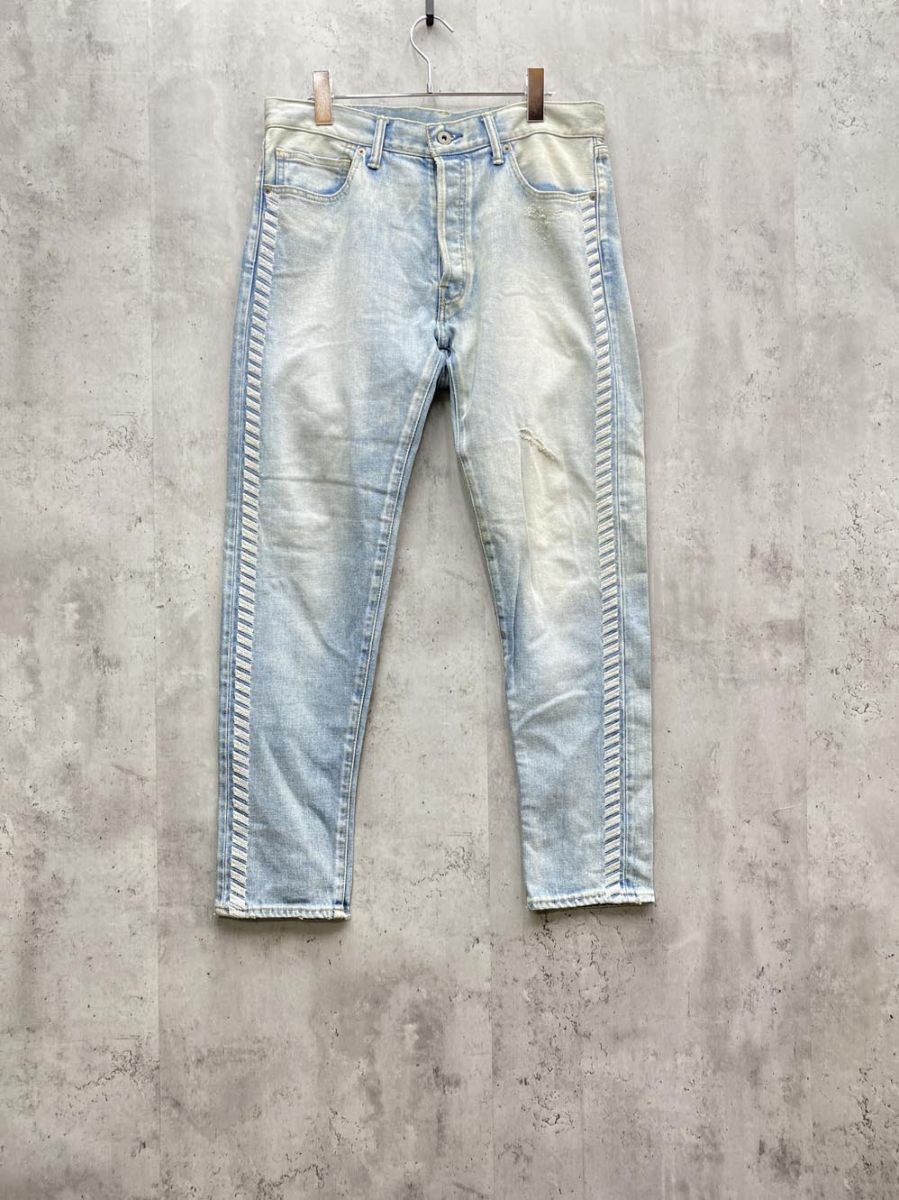 - 5351POUR LES HOMMES 5351プールオム ボタンフライ 刺繍ライン ダメージ デニムパンツ size48/青 ■■