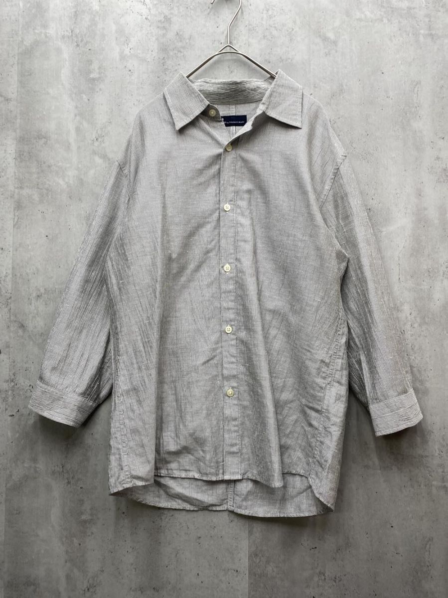 > ゆうパケットOK Zero by TORNADO MART ゼロバイトルネードマート 日本製 七分袖 麻 コットン ストライプ ネル シャツ sizeL/白x黒 ■◆