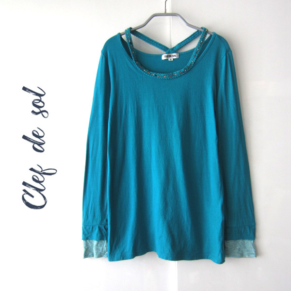 - 美品 CLEF DE SOL/クレドソル★ ビーズ刺繍の付いたカットソー Tシャツ M