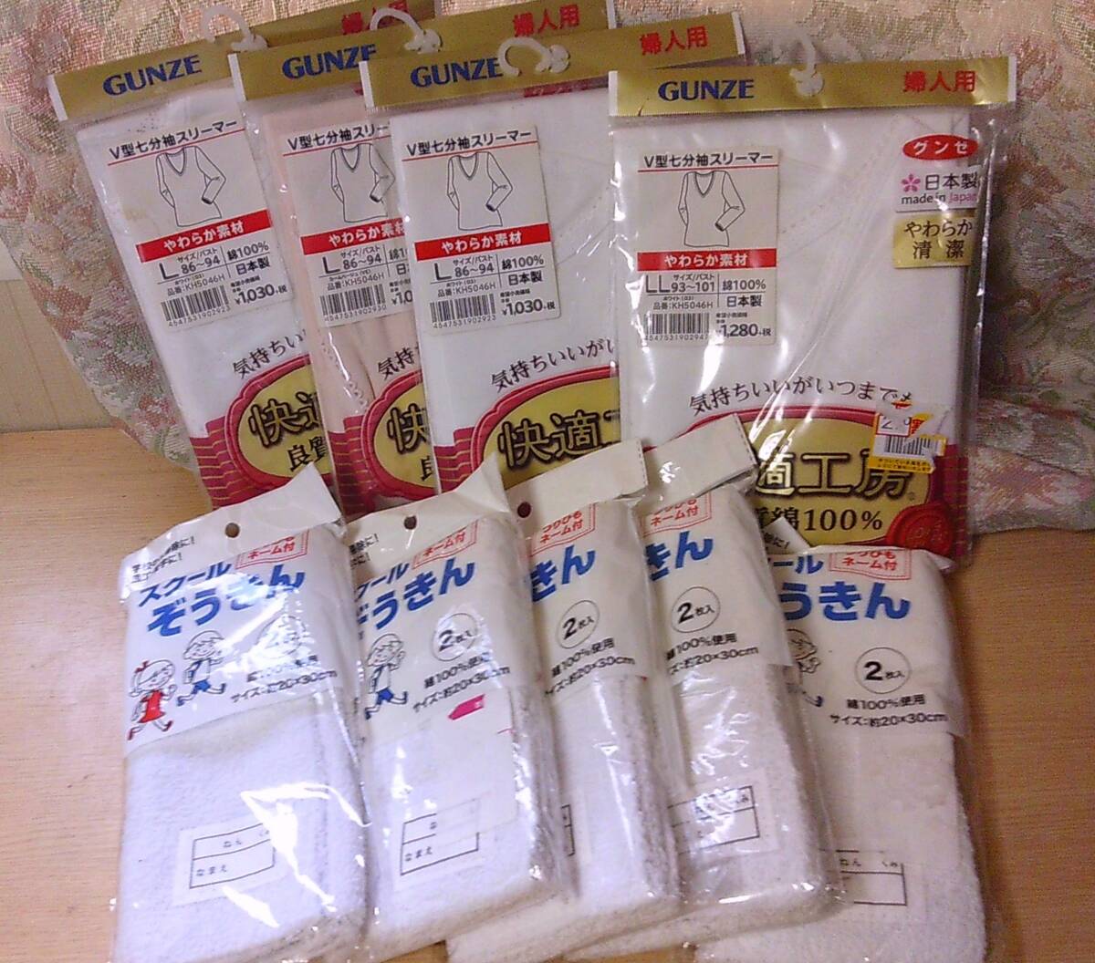 - ◆B-485 GUNZE レディース Lサイズ3枚 LLサイズ1枚 肌着 インナー 婦人物 グンゼ 快適工房 やわらか素材 日本製 スクール雑巾5個