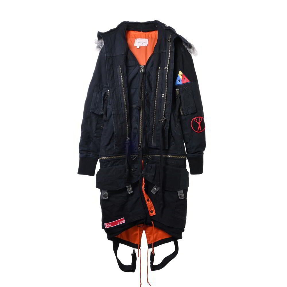 > 美品 GREG LAUREN tent scrapwork3n1 ファー付き モッズコート 1 ブラック グレッグローレン KL4B2LQK61
