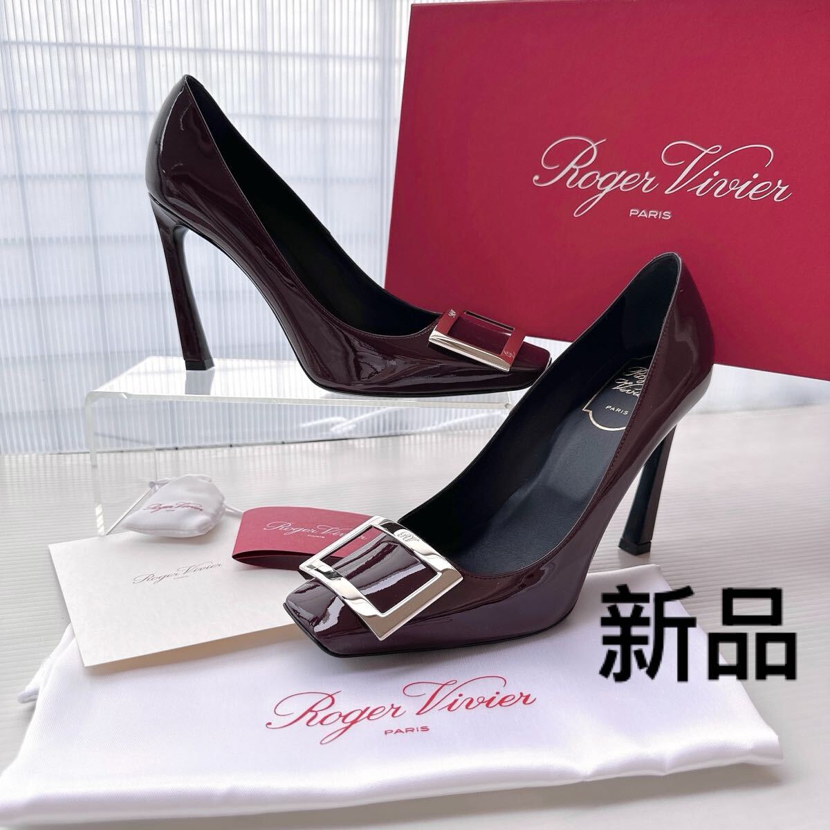 > Roger Vivier ロジェヴィヴィエ メタルバックル ベルヴィヴィエ ハイヒール パンプス 新品 38 パテントレザー ボルドー イタリア製