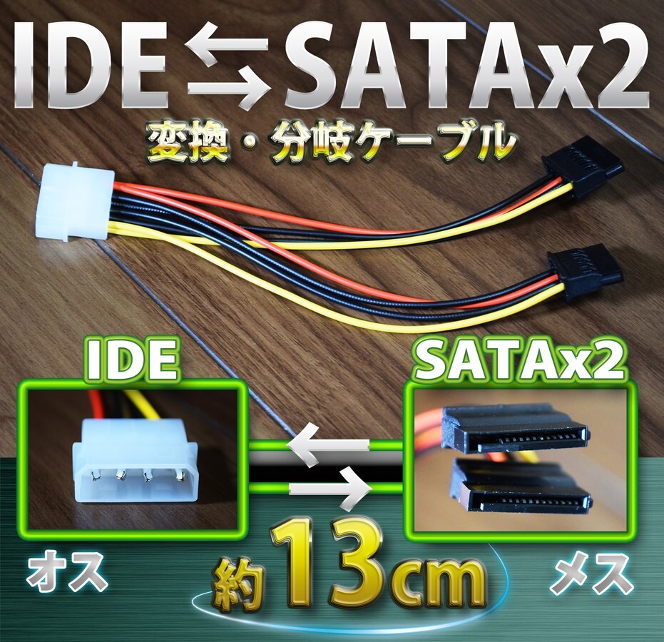 - 新品 ペリフェラル IDE (オス) ⇔ SATA 電源 (メス)x2 分岐ケーブル 変換 ケーブル コネクタ