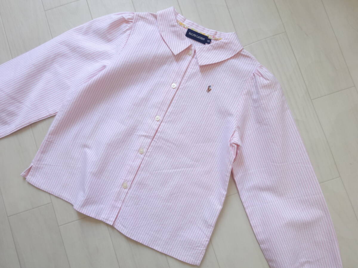 > 値下げ! 未使用 ラルフローレン ピンクストライプブラウス 長袖シャツ 日本製 120サイズ 送料185円