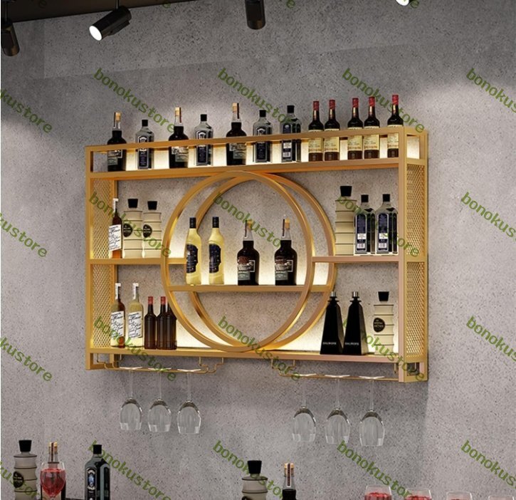 - ワインラック ワインホルダー酒ラック壁掛け ディスプレイスタンド 酒 棚壁掛け式 吊り下げ 壁ワインラックワイン置き 120x15x80cm ゴール