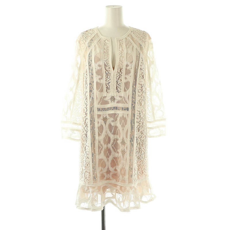 - ビーシービージーマックスアズリア BCBGMAXAZRIA レースロングスリーブワンピース ひざ丈 S ホワイト ベージュ /DF ■OS レディース