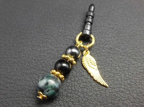 - 天然石×羽根の可愛いイヤフォンジャック 728