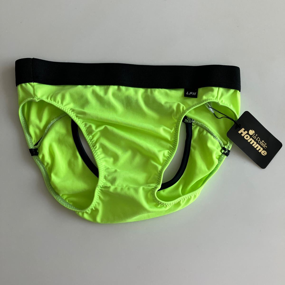- ラポームオム メンズ La-pomme homme メンズ E6000生地 バイク風 Oバックビキニ ライムグリーン M