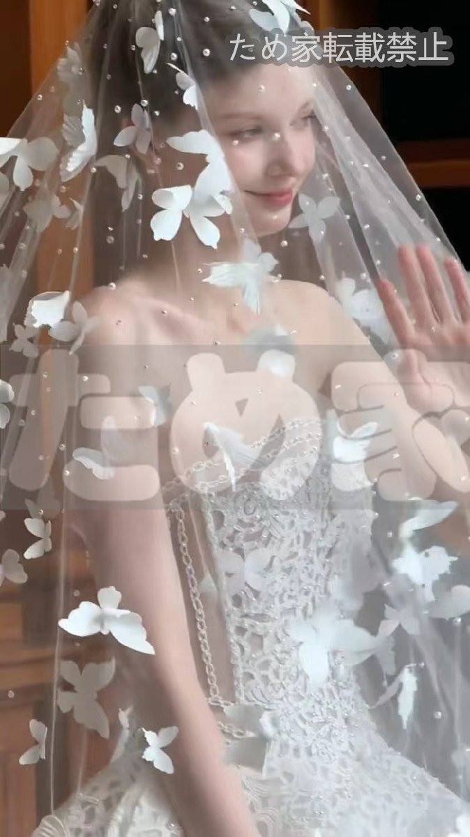 - 1.5*3m 新婦用 白い蝶型ベール パール 豪華 超長型 トレーン付きベール