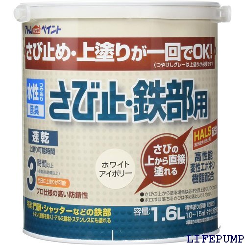 - アトムハウスペイント さびの上から塗れる 水性さび止・鉄部用 1.6L ホワイトアイボリー 8550