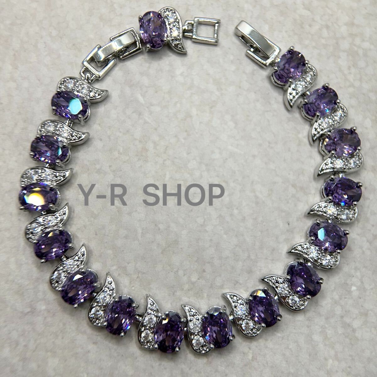 > アメジストとホワイトトパーズのゴージャスブレスレット★レディース腕輪バングルシルバーアクセサリーキュービックジルコニア新品宝石Y-R
