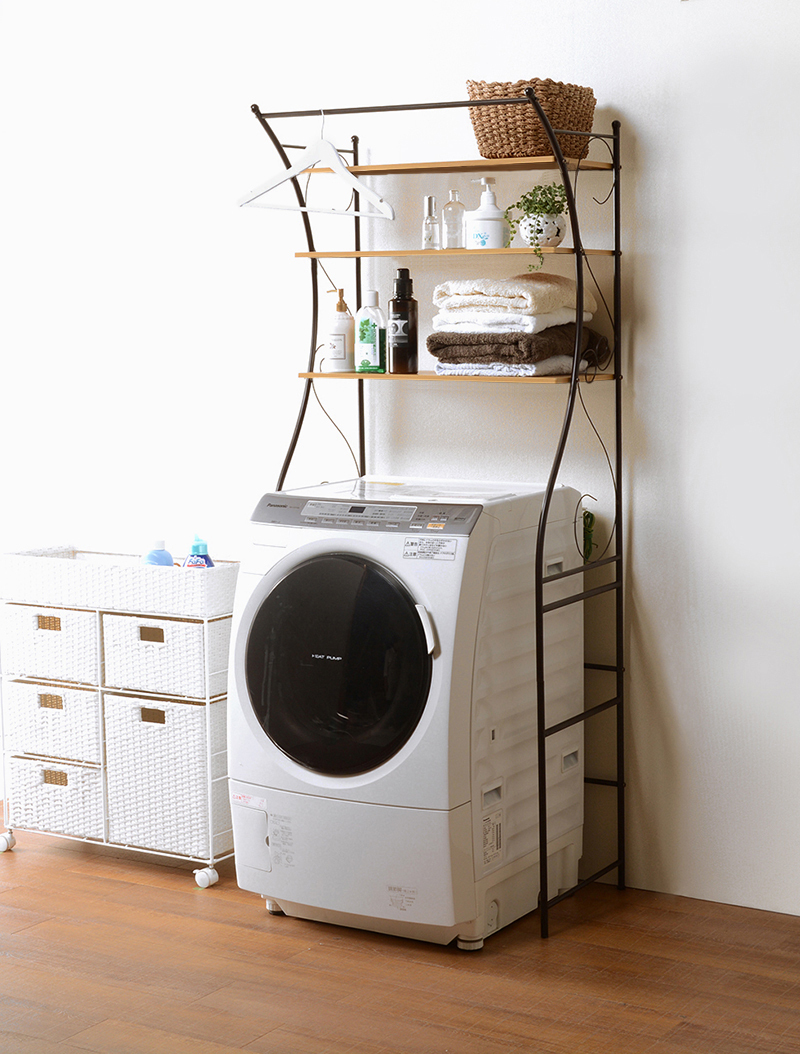 - スペースを有効活用できる洗濯機ラック 幅75 洗濯機ラック ブラウン色